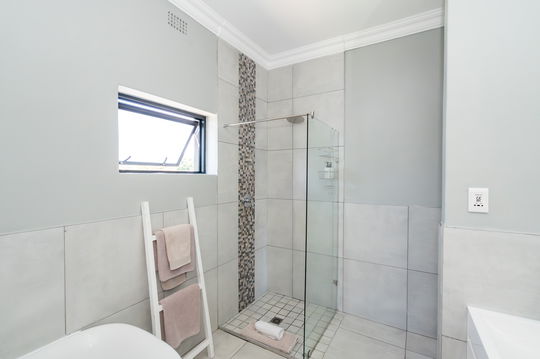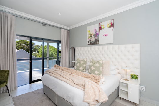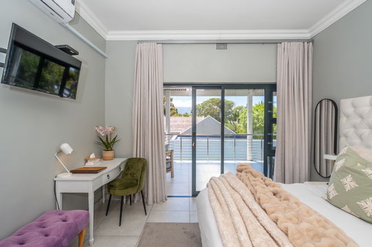 Spacious, luxury king suite allocated upstairs. Full bathroom with bath, shower and twin basins with Charlotte Rhys amenities. Doors open to large, communal balcony with outdoor barbeque and outside seating.