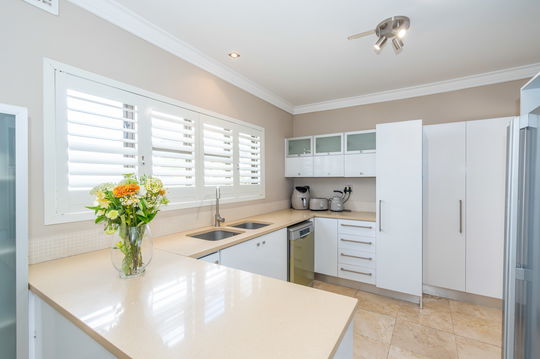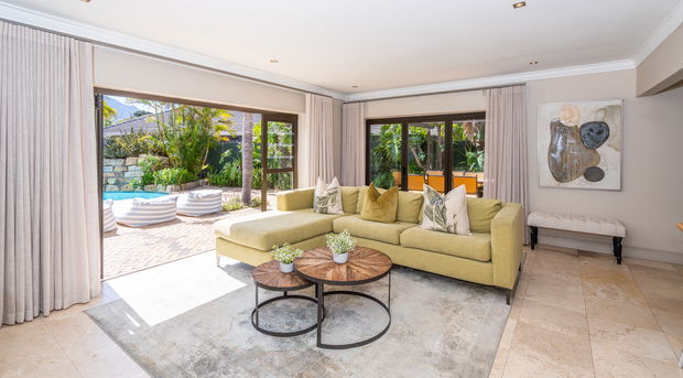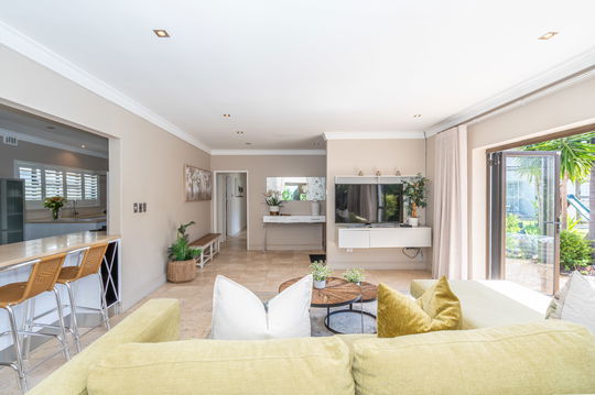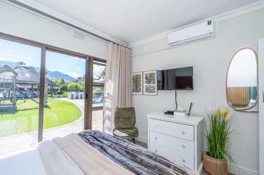The Gardenia Cottage comes with a spacious fully equipped kitchen. It offers an open plan lounge/TV area with stacking doors that lead directly onto the pool, allowing a relaxing indoor/outdoor flow.