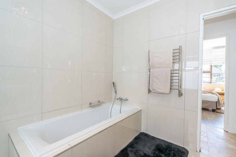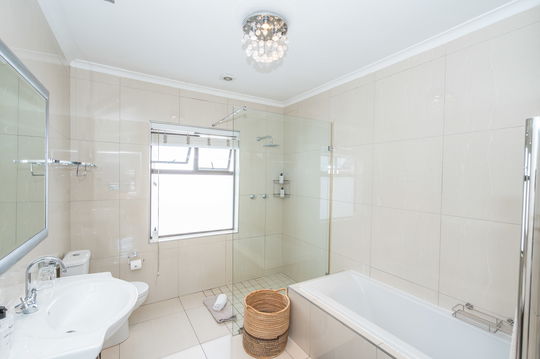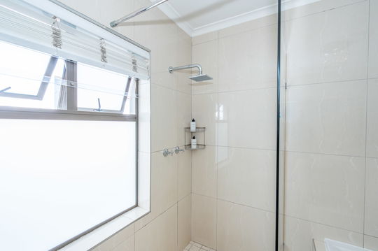 The unit has a shared bathroom with a bath and shower. The lounge has a 43" flat screen smart Tv that has full access to DSTV and you can connect your Netflix or Showmax.