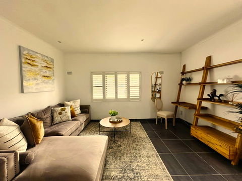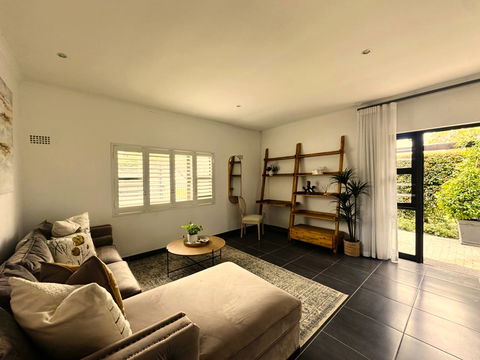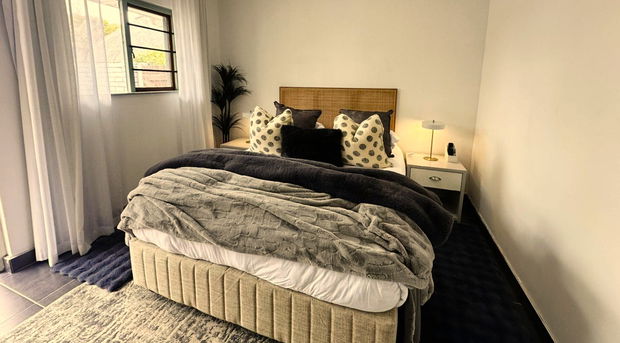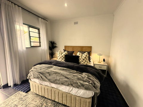 TV in the bedroom with DSTV Bouquet and Netflix optional. The Bedroom door opens up to the small private courtyard. Guests also have access to the pool and braai, garden areas.