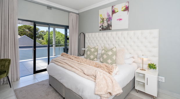 Spacious, luxury king suite allocated upstairs. Full bathroom with bath, shower and twin basins with Charlotte Rhys amenities. Doors open to large, communal balcony with outdoor barbeque and outside seating.